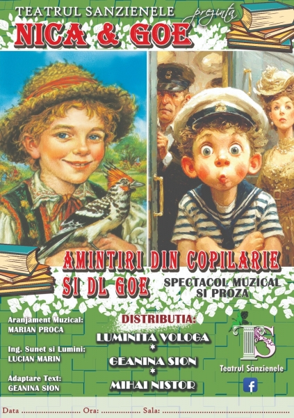 Teatrul Sanzienele va invita la un spectacol de teatru muzical - interactiv plin de culoare si voia buna in care personajele Nica din ''Amintiri din copilarie' si Goe din ''Domnul Goe'' se vor lua la intrecere intr-o competitie de nazdravanii.