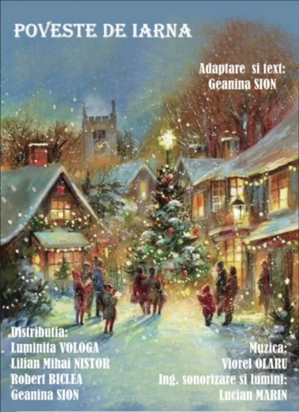 Spectacolul POVESTE DE IARNA este un spectacol muzical-interactiv cu actori profesionisti care impleteste lumea basmului in care traiesc personaje autentice romanesti : Baba Harca, Mos Craciun, Zana Iarna, Fulgii de Zapada, Spiridusii, cu traditiile autohtone , cum ar fi jocul caprei , jocul ursului si alte obiceiuri .
